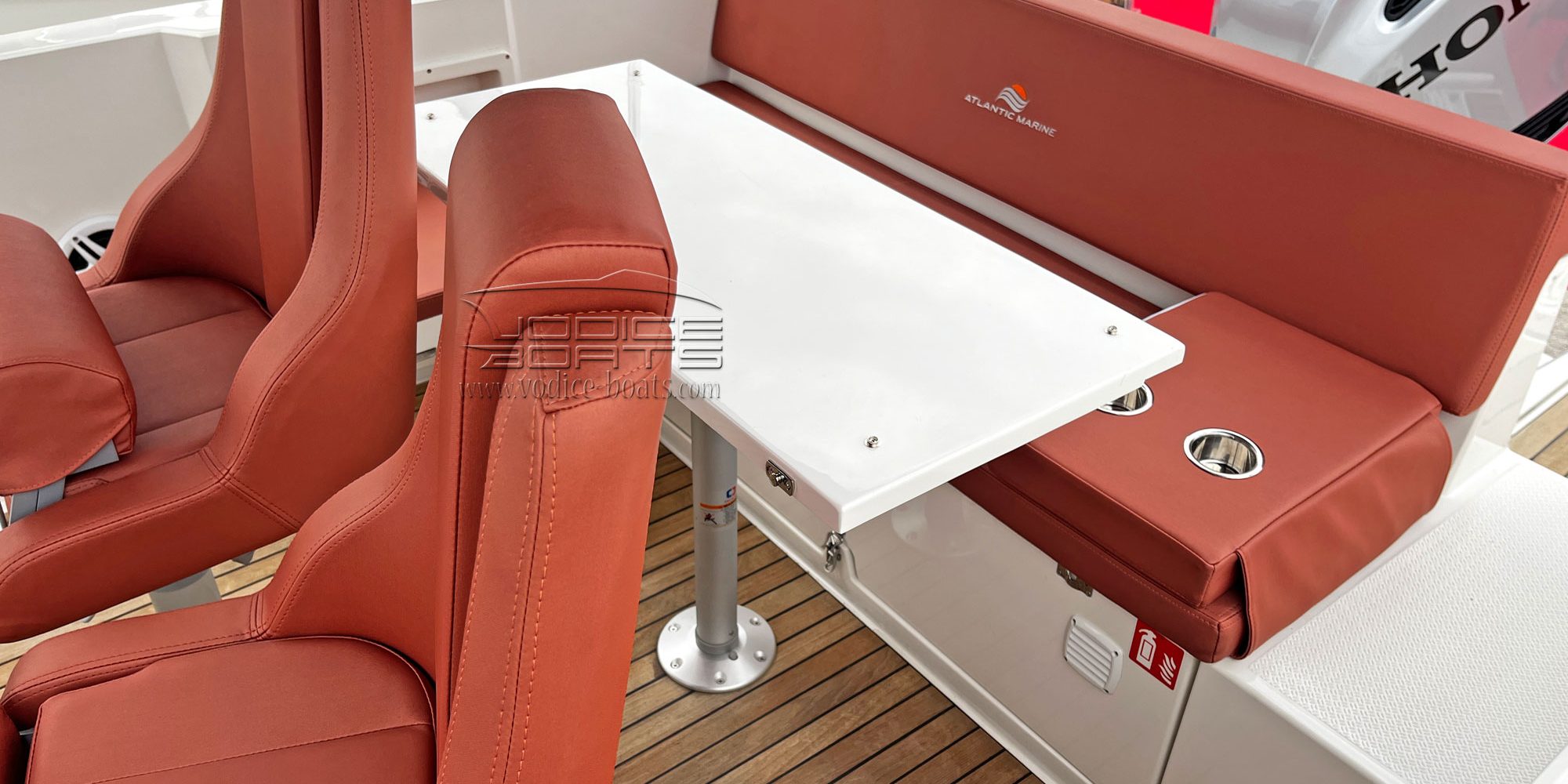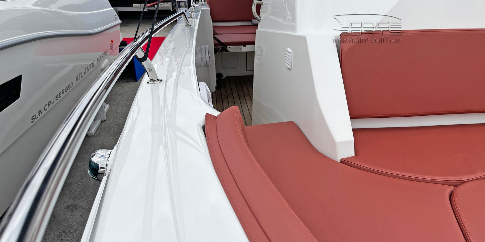 Atlantic Marine Open 700, novi model 2025, prostrani kokpit, mnogo sjedećih mjesta za putnike, modernih linija i detalja, odlične završne obrade i odlične kvalitete vanjskih jastuka sa durabilnim i praktičnim rješenjima, certifikat nosivosti 10 putnika,… Gliser na lageru opremljen je sa sljedećom dodatnom opremom: